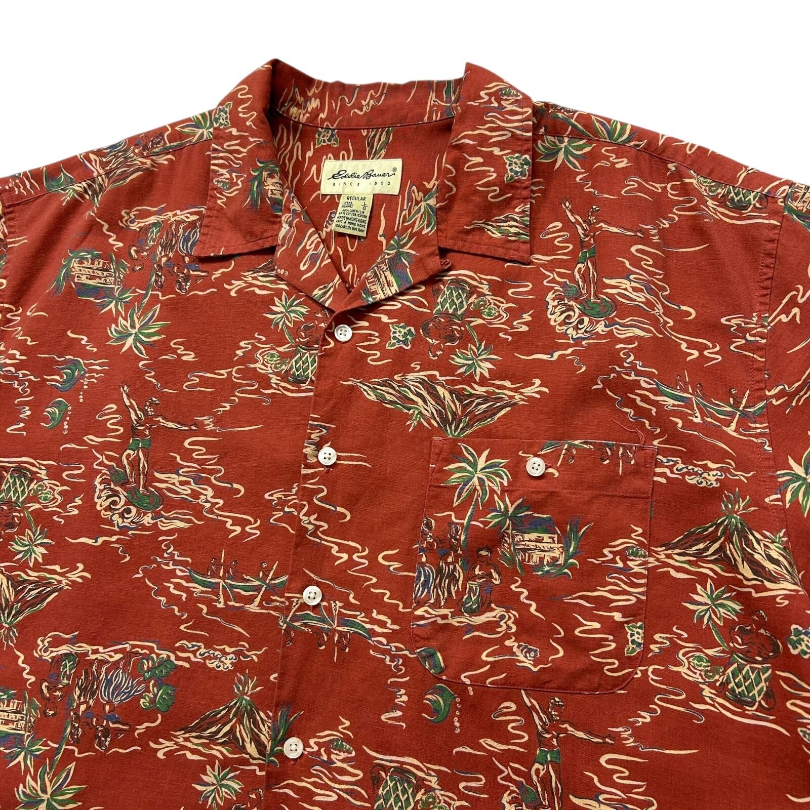 EDDIE BAUER HAWAIIAN BUTTON SHIRT LINEN/COTTON SIZE L (USED)