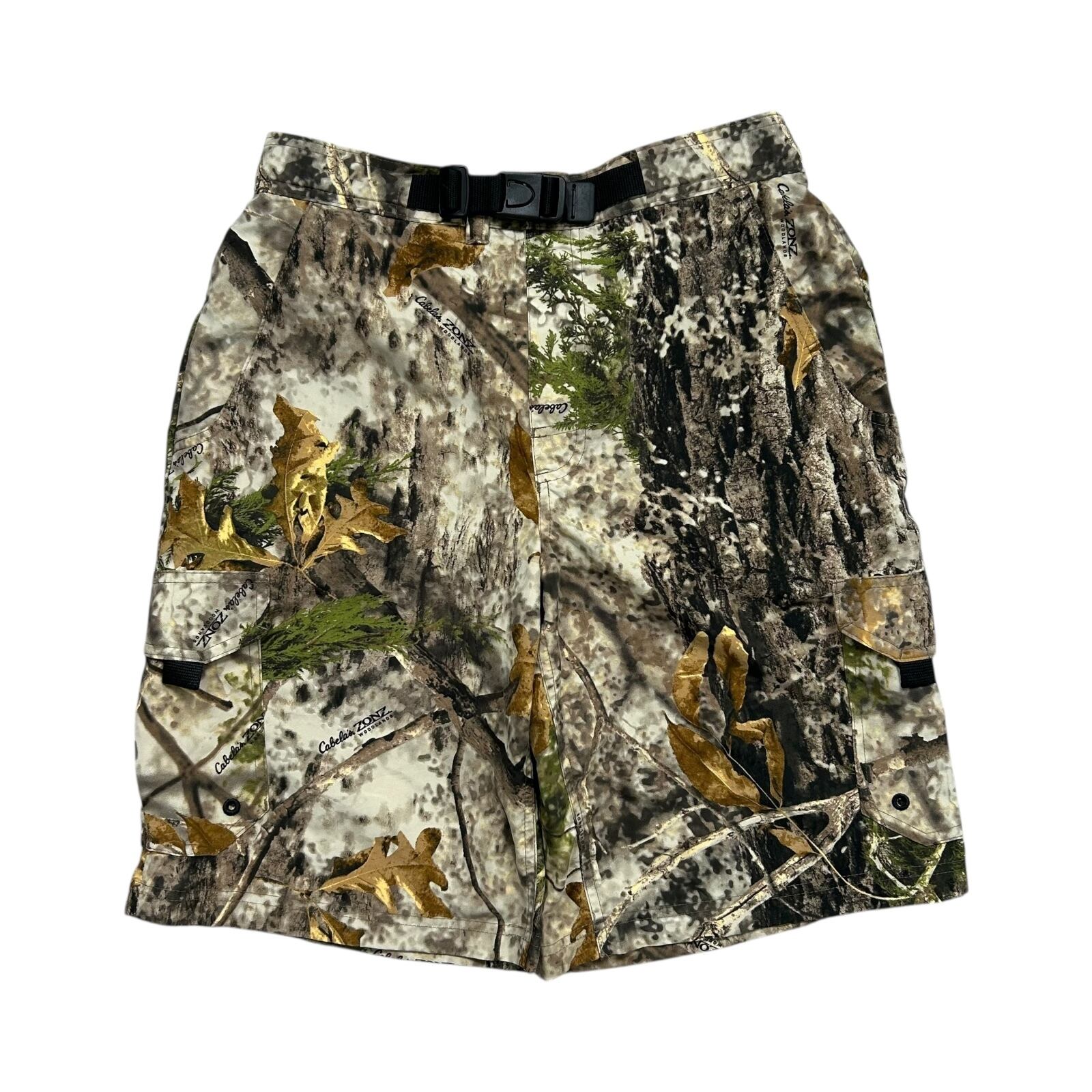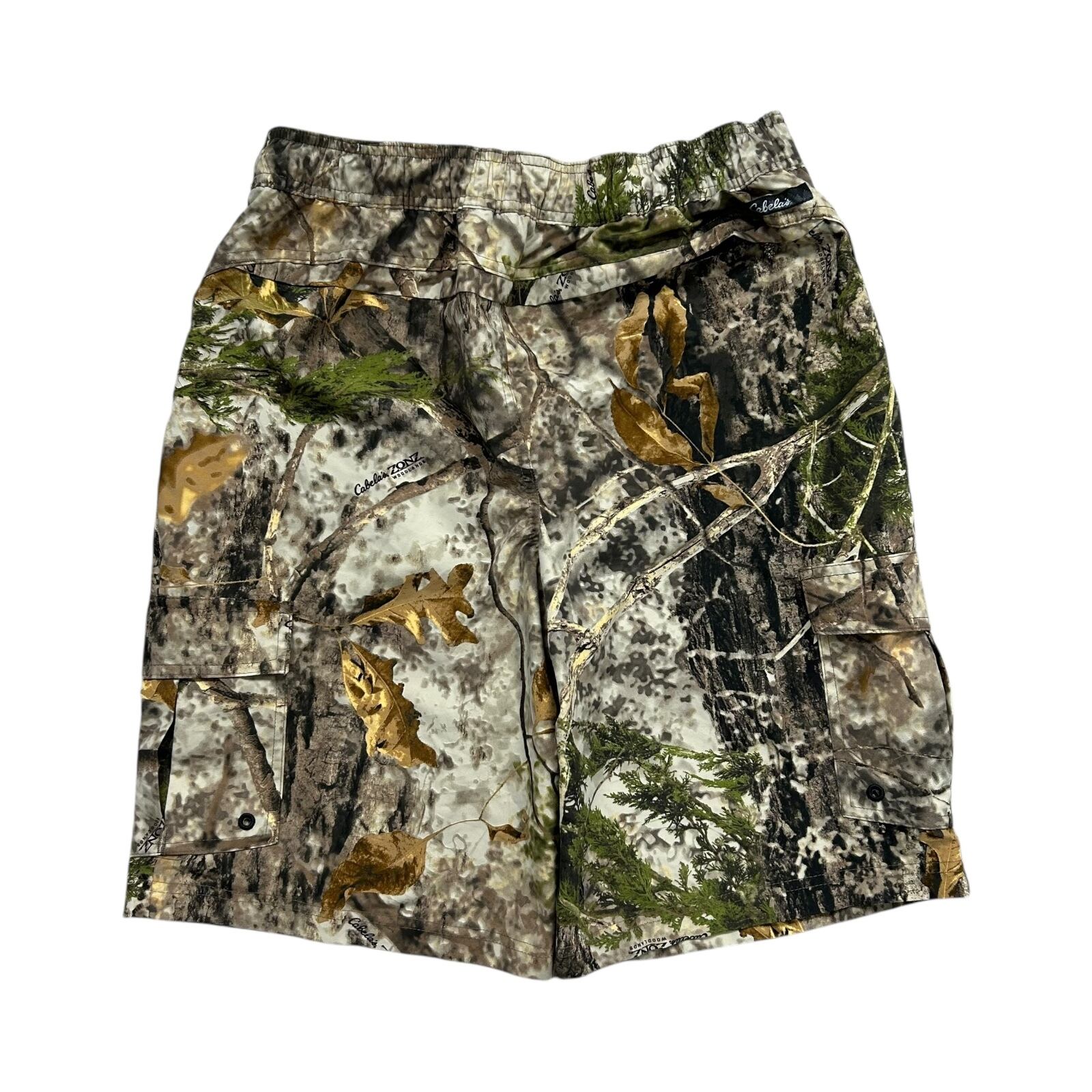CABELA'S ZONZ WOODLAND CAMO CARGO SHORTS SIZE M (USED)