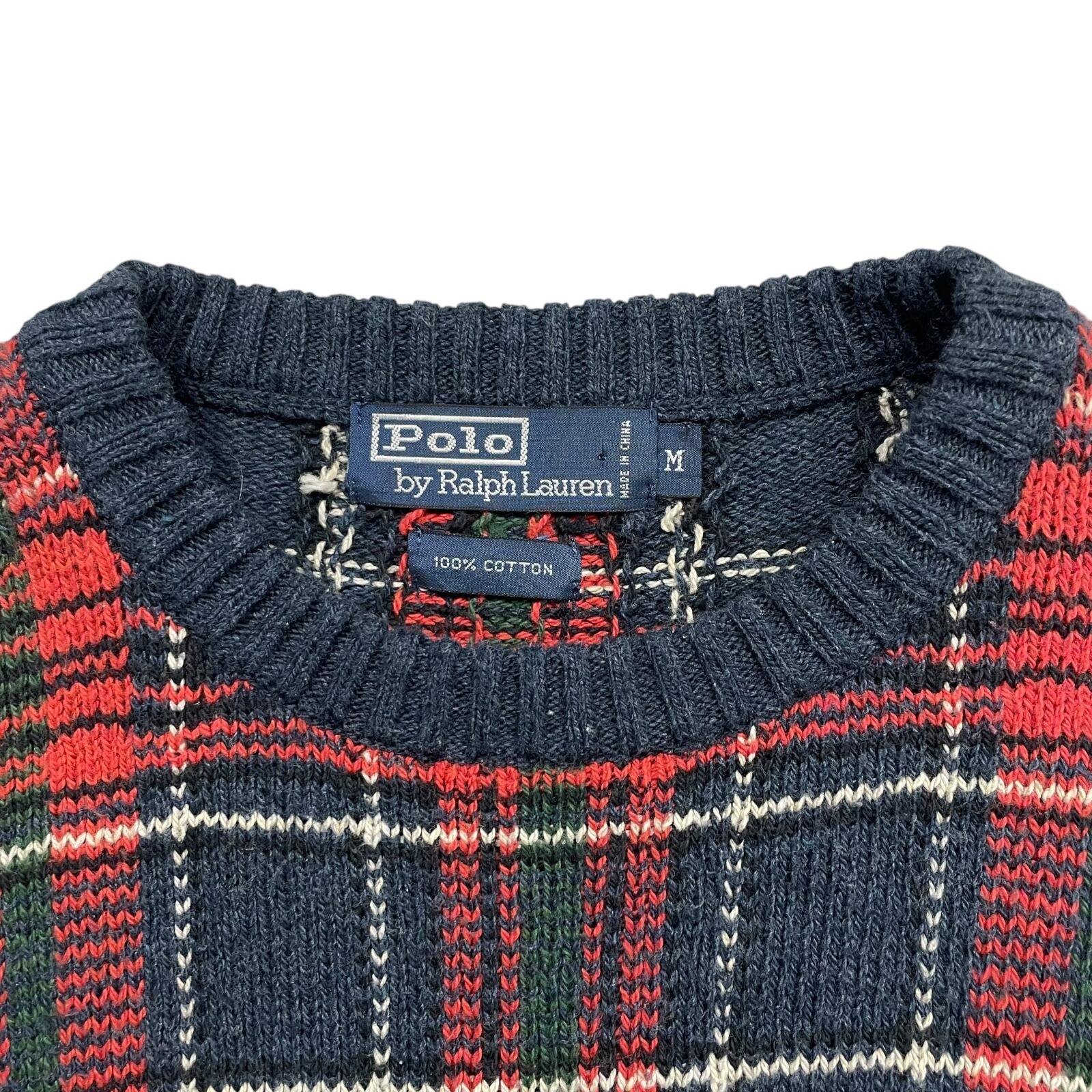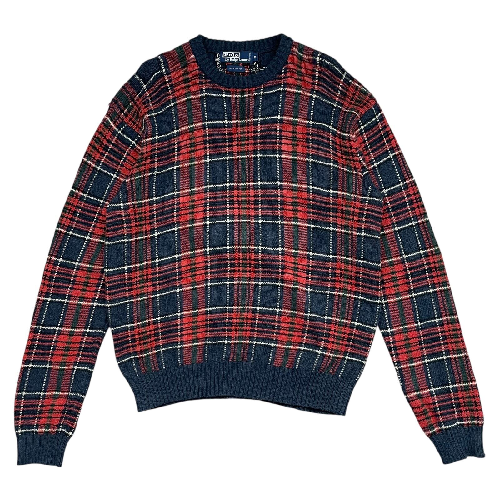 POLO RALPH LAUREN TARTAN PLAID COTTON KNIT SWEATER SIZE M (USED)