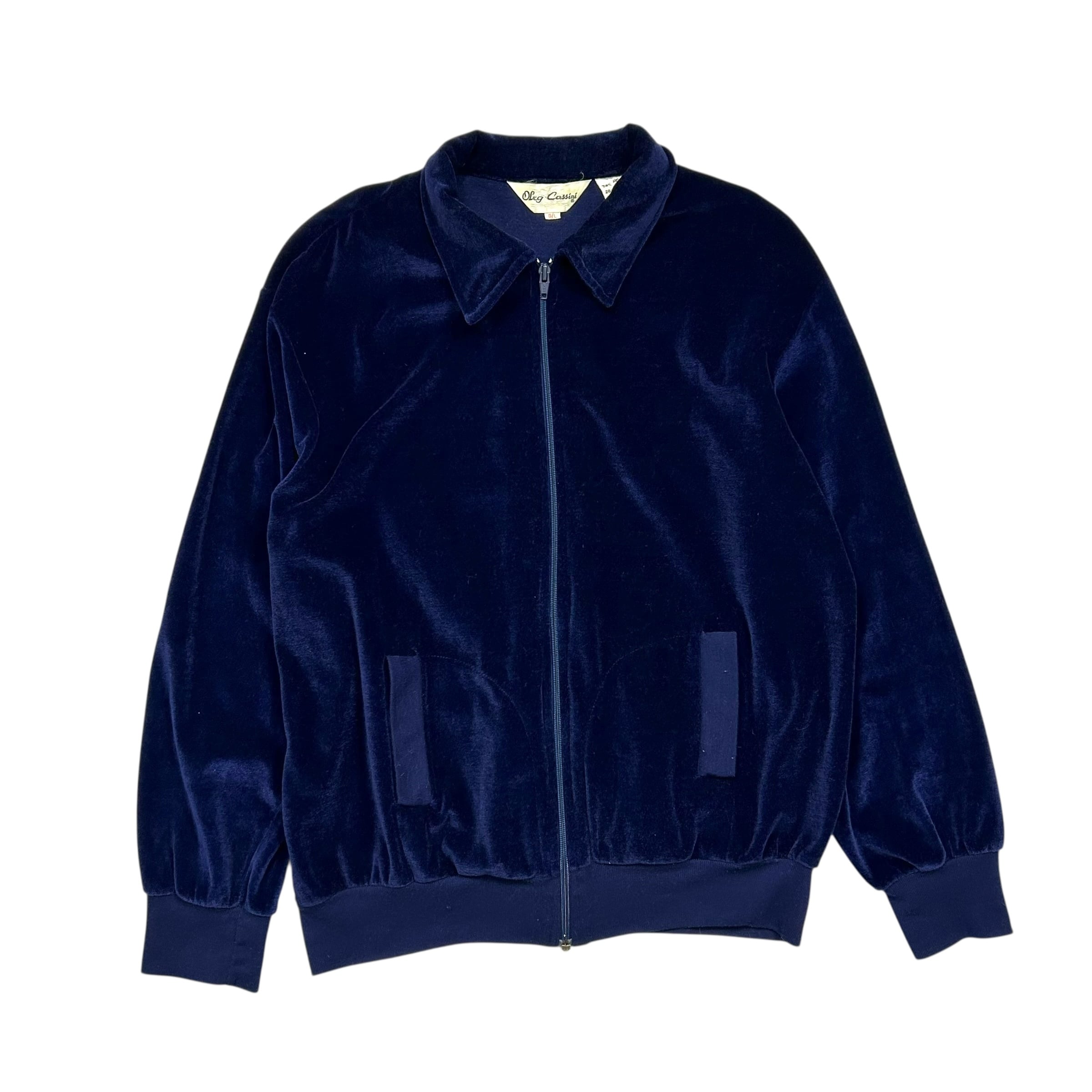 OLEG CASSINI VELOUR ZIP UP JACKET NAVY BLUE SIZE L (USED)